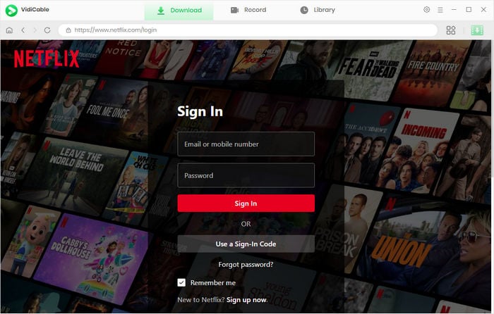 You'll see a same main interface as the website you've chosen in Step 1. Click Sign In to pop up the login page, then you will be prompted to log in to the corresponding site. (The picture takes Netflix as an example.)